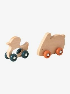 Promo ๐ Set of 2 Wooden Animals on Silicone Wheels – orange dark solid, Toys โ๏ธ
