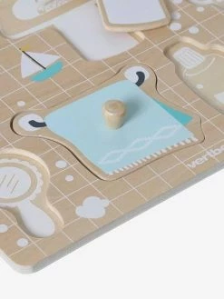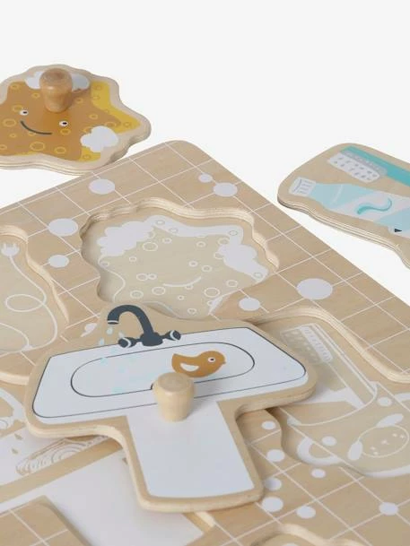 Large pegs that are easy for little hands to grasp, with contours for easy playing; this puzzle has been designed especially for little ones and comes with 10 bathroom elements for children to sort and fit, and have fun while developing fine motor skills.