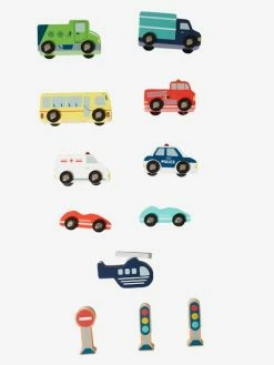 9 vehicles and 3 traffic signs for real movement on the road! Police car, lorries, ambulance, bus… traffic lights and “no entry” sign… just like in real life! A must-have game with lovely wooden toys designed especially for little hands.