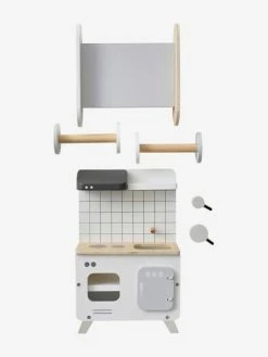 Ideal to furnish their fashion doll’s house, these fixtures are all that’s needed to give their favourite dolls the best kitchen ever! Cooking unit with built-in sink and fridge, high table and chairs + 2 pots… 6 items for realistic décor and wonderful stories to make up!