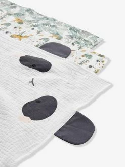 - 1 square with foliage print, 1 square with tigers print, 1 square panda with ears