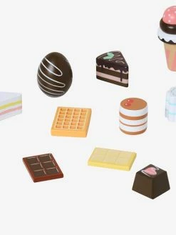 - 2 cupcakes, 1 slice of fruit cake, 1 slice of chocolate cake, 1 chocolate egg, 1 nougat, 1 chocolate, 1 waffle, 1 milk chocolate with fruit, 1 white chocolate with fruit, 1 dark chocolate bar, 1 white chocolate bar, 1 ice cream