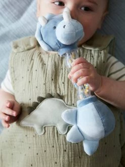 Little Dino rain stick in cotton and polyester. Transparent stick in plastic.