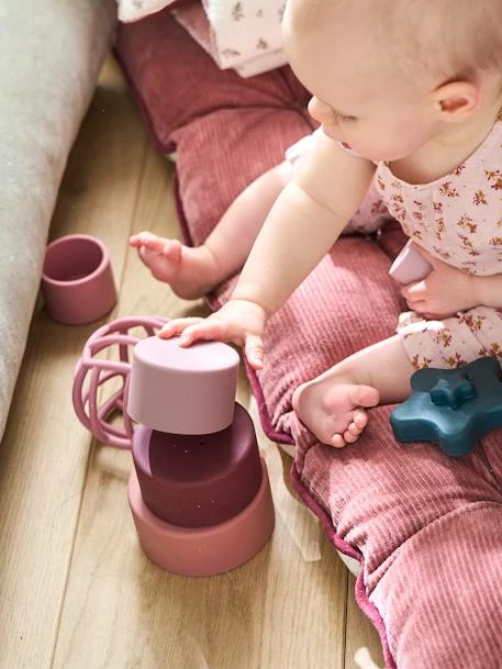 5 stackable pieces in silicone to create a pyramid in 5 shades of pink! Trendy and ideal for kids, the soft silicone is safe to chew and can also be used in the bath.