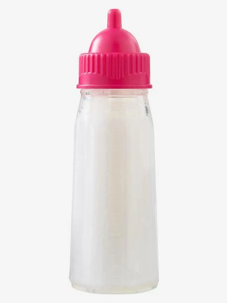 Set of 2 magic feeding bottles for dolls, in plastic.