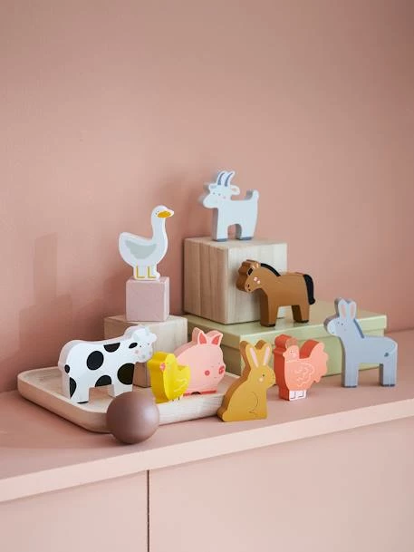 A set of wooden animals for children to make up lovely stories with. In two versions: farm animals or jungle animals, these little wooden toys are so cute you can even use them as a decorative item in the bedroom!