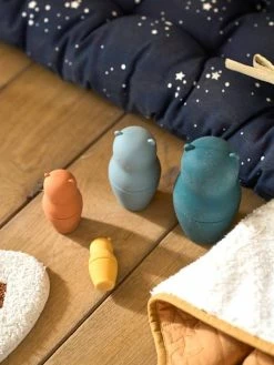The notorious nesting dolls are now in an adorable bear shape! Children will love opening the boxes and discovering an even smaller bear hiding inside. These stackable boxes are composed of 4 silicone bears. The aim of the game: each bear must fit inside one another, from the smallest to the biggest.