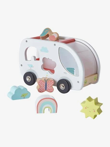 Adorable and so much fun, this vehicle comes with 5 shapes to sort and fit. Children can also use it as a toy car to pull along!