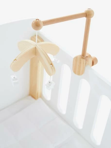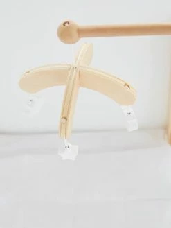 We push realism to the limit with this cute wooden mobile that hangs over their doll’s bed!
